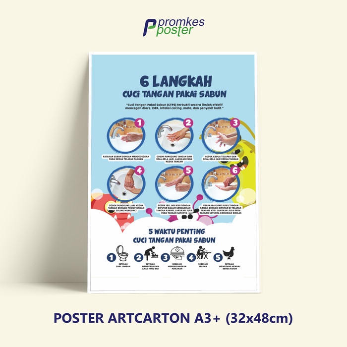 Poster cara cuci tangan pakai sabun yang benar.